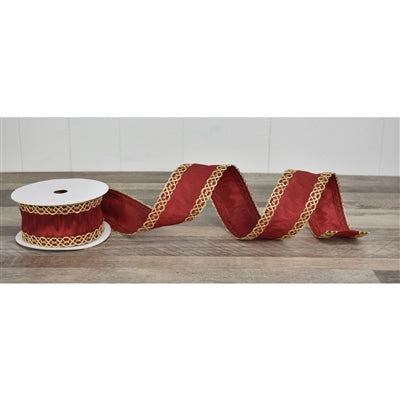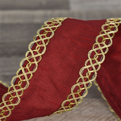 FAUX DUPIONI SILK W/ CELTIC BRADED EDGE - RED 2.5" X 10YD