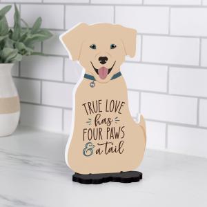 Carved into the shape of a dog, this piece includes fun, definitive features paired with bold and inspirational artwork. Makes a great gift and is perfect for display on a work desk, dresser, or kitchen countertop. Includes wooden base for easy display.