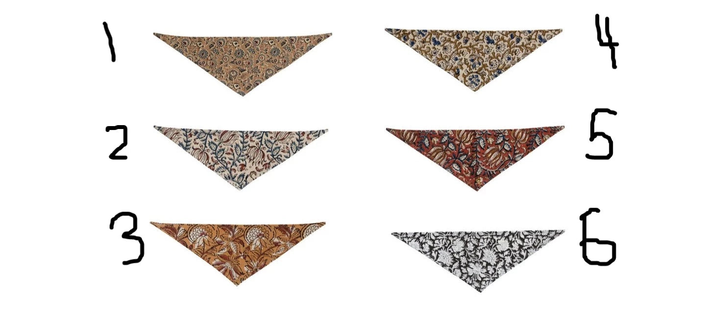 Cotton Dog Scarf w/ Block Print, Multi Color, 6 Styles Small