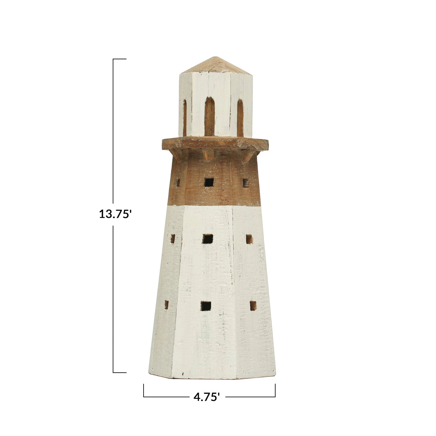 5-1/4"L x 4-3/4"W x 13-3/4"H Wood Lighthouse, White & Natural