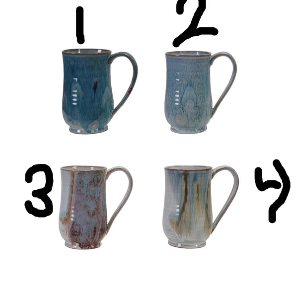 3-1/2" Round x 5-3/4"H 20 oz. Stoneware Mug, Reactive Glaze, 4 Colors (Each One Will Vary)