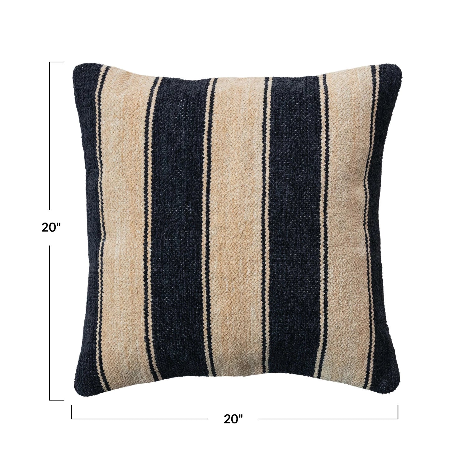 20" Square Woven Cotton Blend Chenille Pillow w/ Stripes & Cotton Back