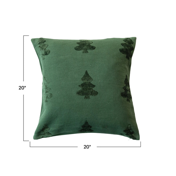 20" Square Woven Cotton Blend Jacquard Pillow w/ Trees, Green