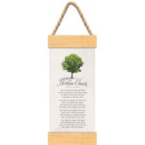 This item combines elements of both hardwoods and soft textiles, by printing typographical art on canvas between two lightly stained wood sticks. Banner includes jute string for wall display.