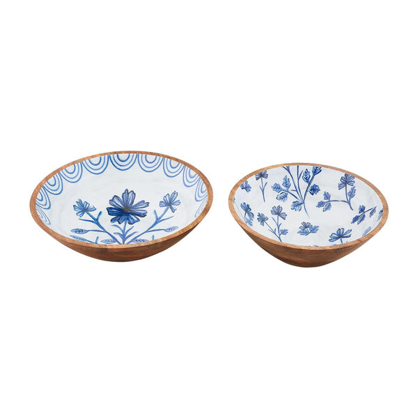 mango wood bowls with enamel pattern interiors. Sold separate