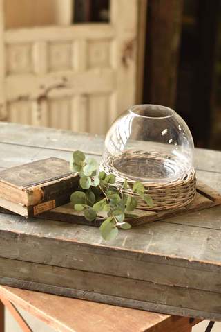 Glass vase with a whicker bottom  Glass can be removed for easy cleaning