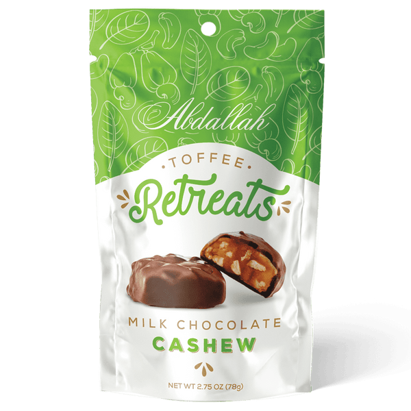 Cashews and a tender butter crunch drenched in milk chocolate  2.75 oz. bags