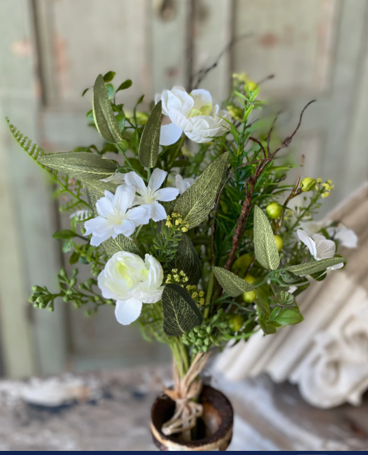 Chantilly Fields Bundle | 15" A collection framed with a bounty of mixed greenery, branching accents and ferns that showcase creamy spring blossoms, sprigs of tiny bubble berries and shoots...
