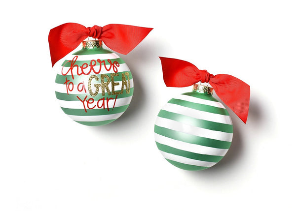 The Cheers To A Great Year 100mm Glass Ornament features a classic stripe design with room on the back of the ornament for you to personalize with your favorite memory...
