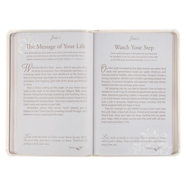 The Mr. & Mrs. 366 Devotions for Couples White Faux Leather Devotional is a great starting point for a new marriage and the perfect way to get into the habit...