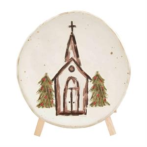2-piece set. Hand-painted stoneware plate. Comes with wooden easel display stand.