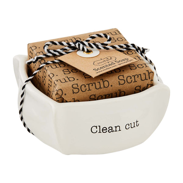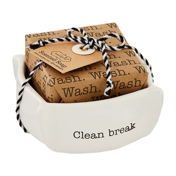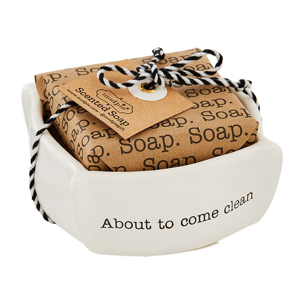 Soap dish is made of dolomite Soap dish measures 3 1/2" x 3 1/2" Soap is pear and freesia scented