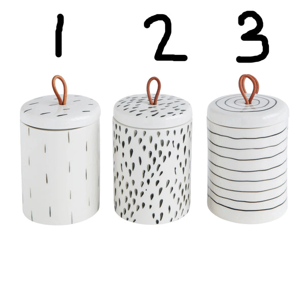 Container with Lid and Leather Pull, 3 Styles