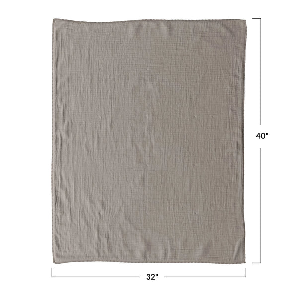 This darling baby blanket features supple cotton double cloth with trim in bag. Machine Wash Cold. 40"L x 32"W Cotton Double Cloth Baby Blanket w/ Trim in Bag, Taupe