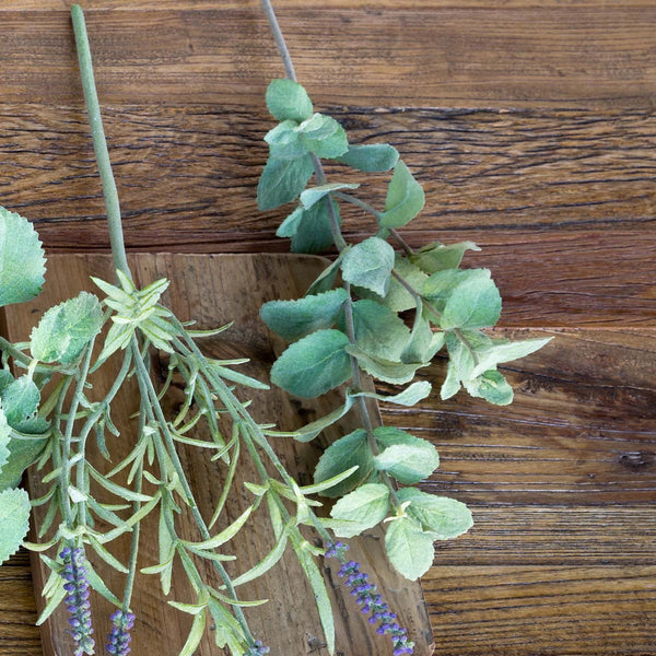 This crafted mint stem features painstakingly realistic details, making it ideal for lifelike displays and arrangements. 5" x 5" x 22.5" Polyester, plastic, and wire