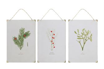 11-3/4"L x 17-3/4"H MDF & Paper Wall Decor w/ Vintage Reproduction of Botanical Print, 3 Styles