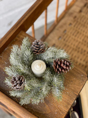 A snowy, shimmering pine collection that is sure to add a dash of festivity to any space it graces!  Features snow, glitter, and natural pine cones. 8” | 2” inner...