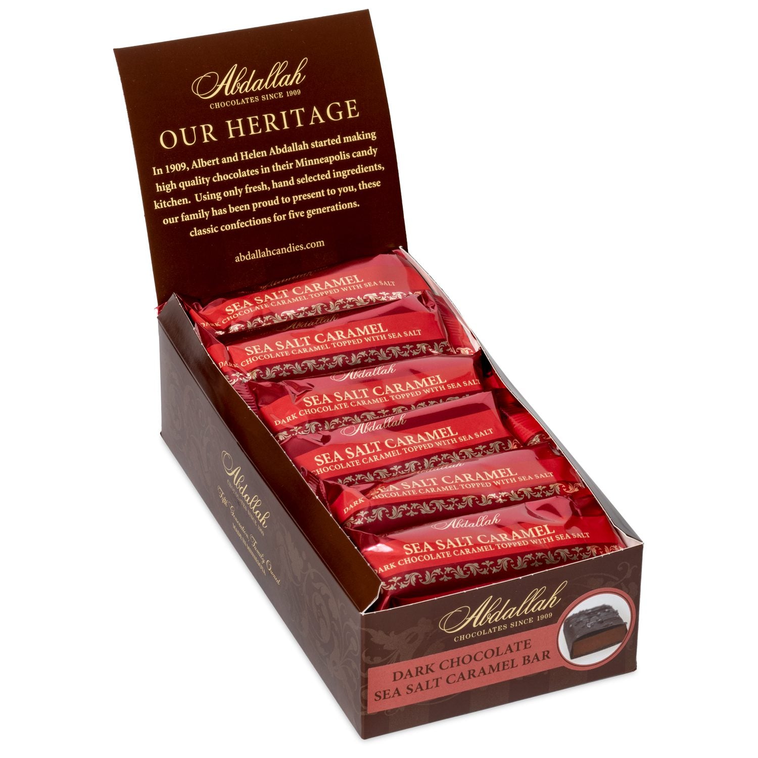 Creamy caramel covered in dark chocolate and topped with a sprinkle of sea salt.