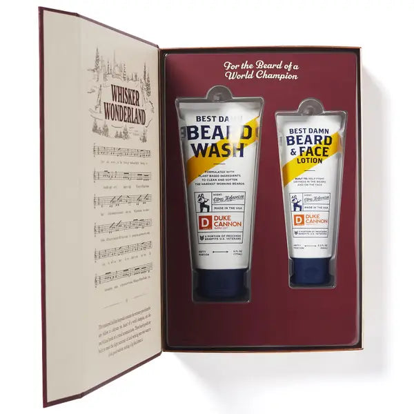 This treasured holiday keepsake contains the necessary provisions for any fellow to cultivate the beard of a world champion, not the uncivilized brush of a crazed mountain hobo. These beard-goods...