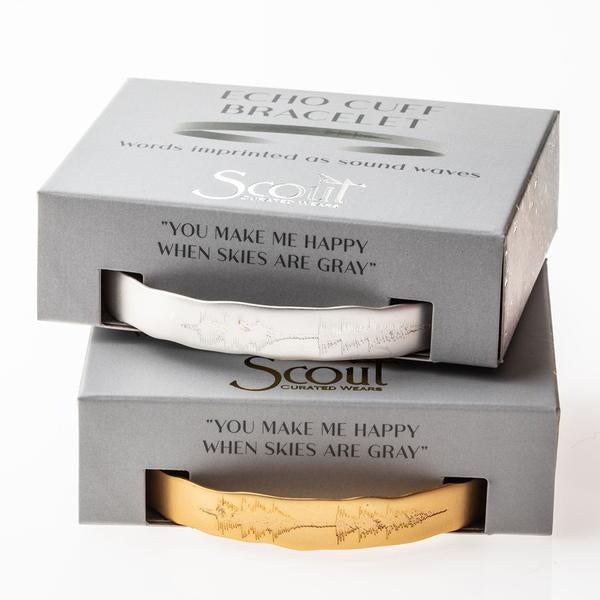 "You make me happy when skies are gray" Words imprinted as sound waves. Message has been imprinted as beautiful sound waves. The hidden translation is inscribed inside the cuff.   ...