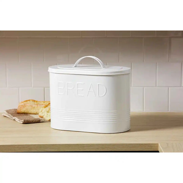 Our Farmstead Bread Box is sure to fit in nicely with your other kitchen accessories. The embossed enameled tin bread box features a lid. The front of the box features...