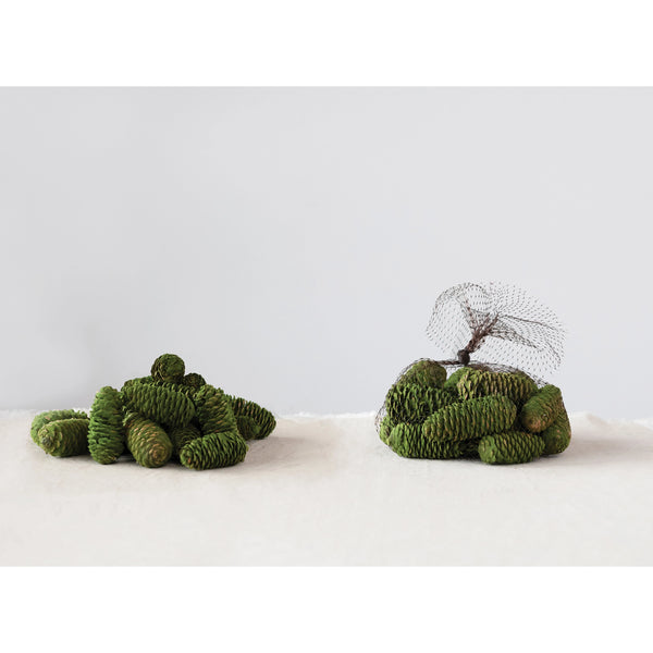 Flocked Dried Natural Pinecones in Net Bag (Contains 20 Pieces)