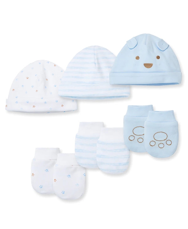 Stock up on warming essentials, and never be without what he needs. This adorable collection ensures his comfort with a trio of newborn baby boys' hats and three pairs of...