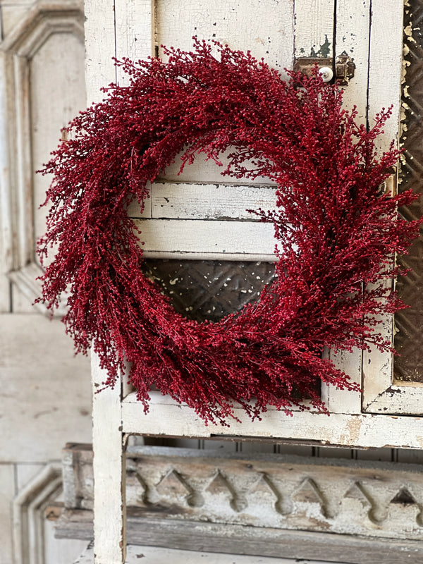 Legions of tiny red berries create a gorgeously textured collection that is a wonderful way to add that perfect pop of color to displays!   materials: plastic, bundled twig base