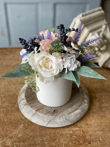 A floral celebration! This collection features a swoon-worthy variety including roses, blossoms, spires, berry clusters, and mixed greenery. Ceramic pot included. materials: plastic, polyester, styrofoam berry clusters, ceramic pot