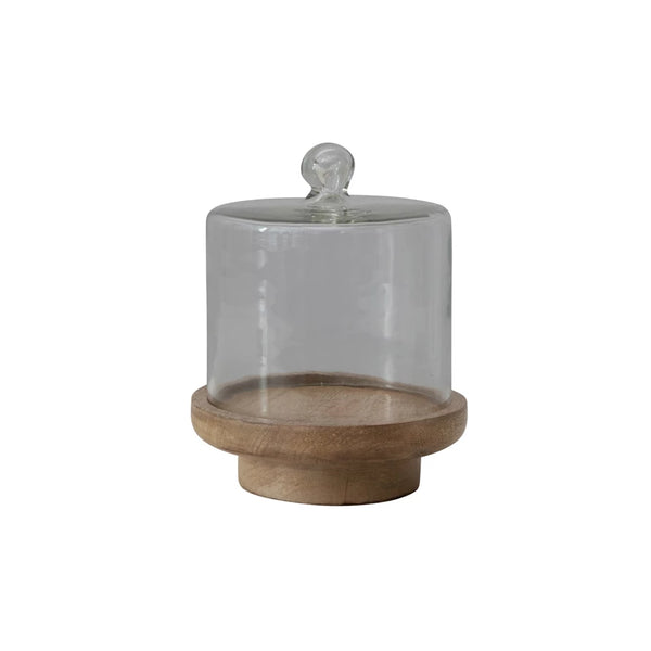 Glass Cloche w/ Footed Mango Wood Base, Set of 2
