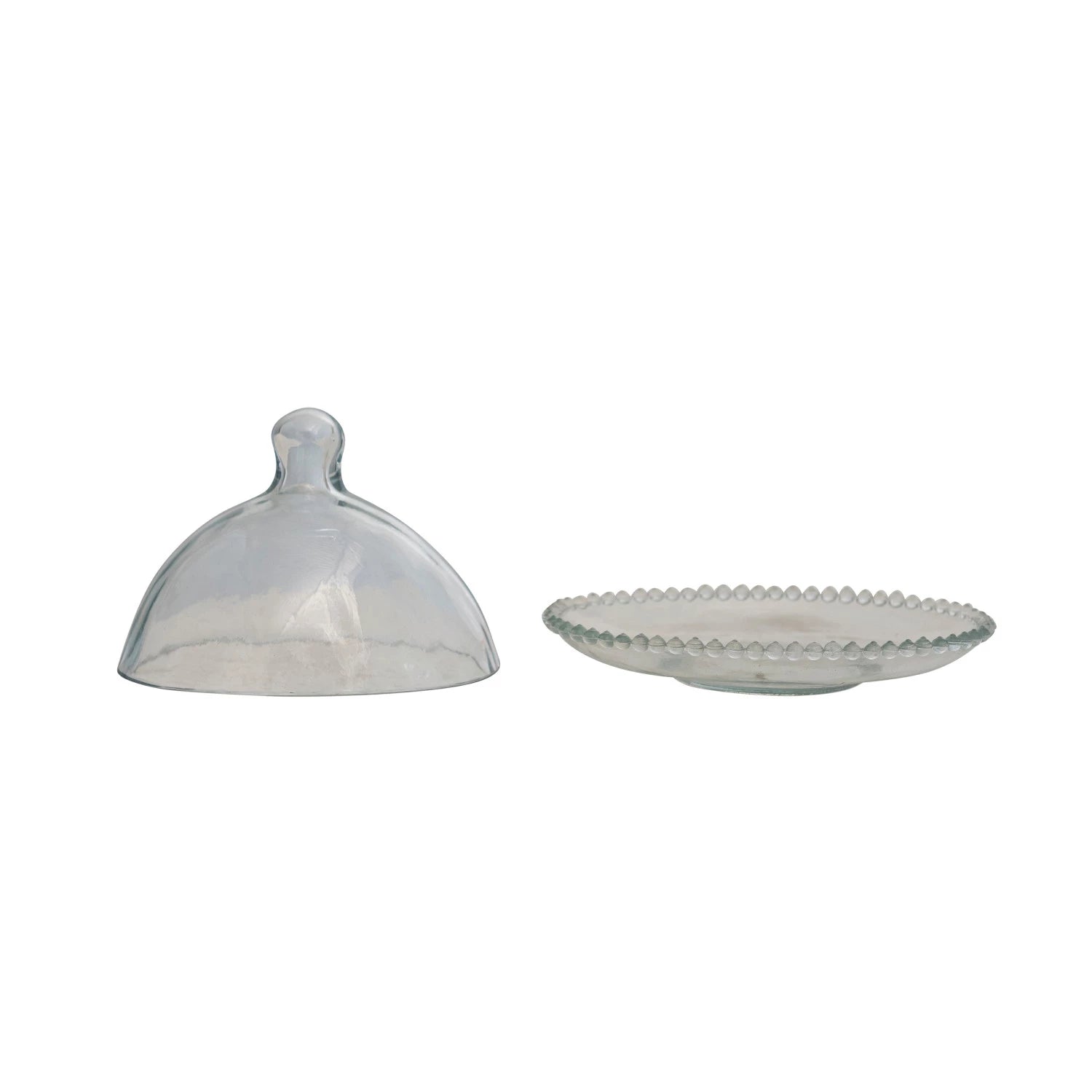 8-1/2"L x 6"W x 6"H Glass Cloche w/ Hobnail Edge Tray