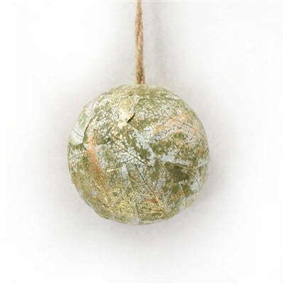 GLITTERED PAPER MACHE ORNAMENT - SAGE GREEN GOLD 3.75"