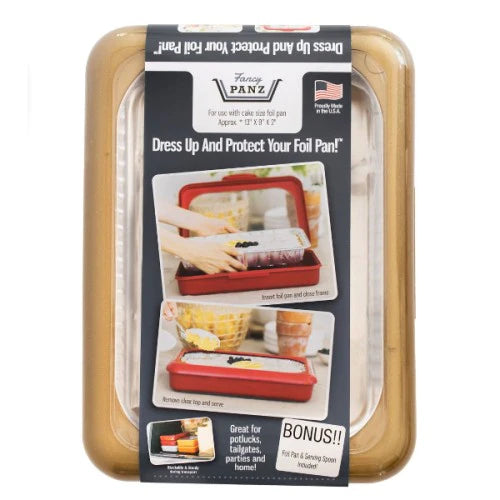 Dress up those easy to use recyclable foil pans the Fancy Panz way in a new 9" x 13" sheet casserole size! Simply place your hot (300 degrees or less)...