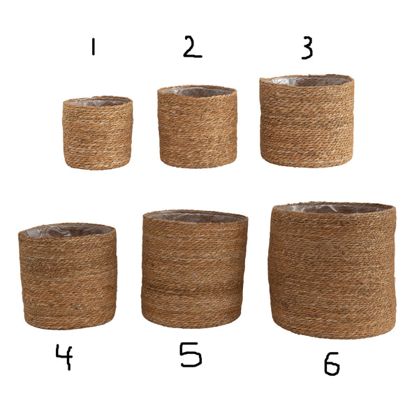 These hand-woven baskets are truly unique. Each basket is made of natural seagrass and includes a handle.  Sol Separately