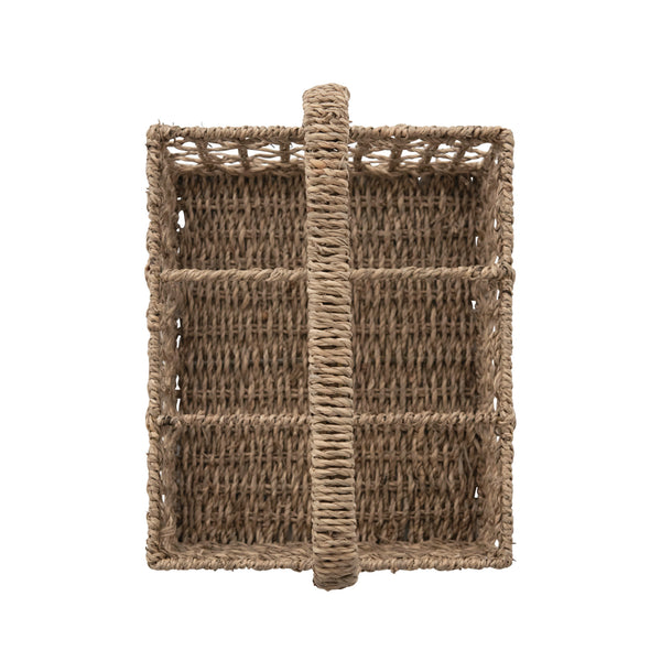 Hand-Woven Seagrass Caddy with Handle and 6 Sections