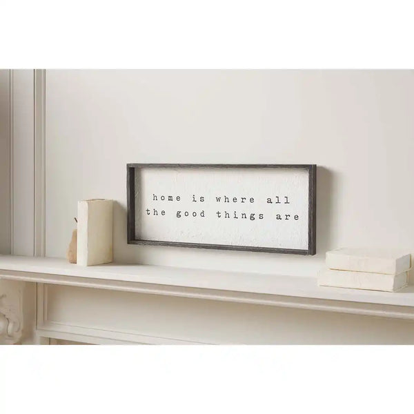 Make your house feel like a home with our Home is Where Wall Sign. The recycled paper plaque features a black stained paulownia wood frame. The frame also comes with...