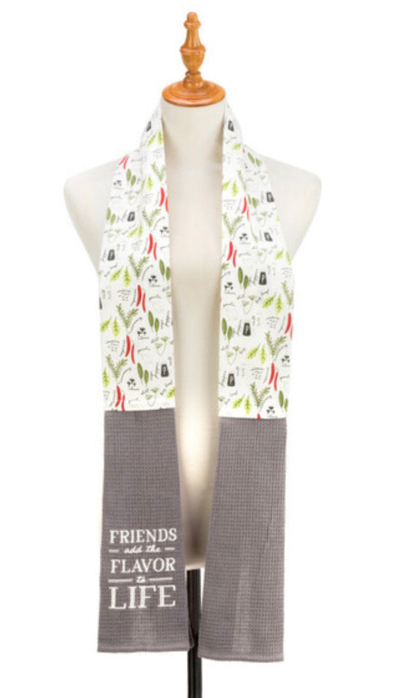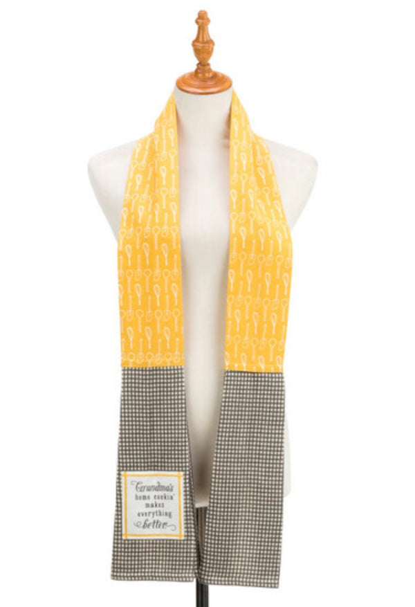 Avoid all of the reaching and searching for the dish towel by draping the kitchen towel around your neck for instant cleanup of small messes.
