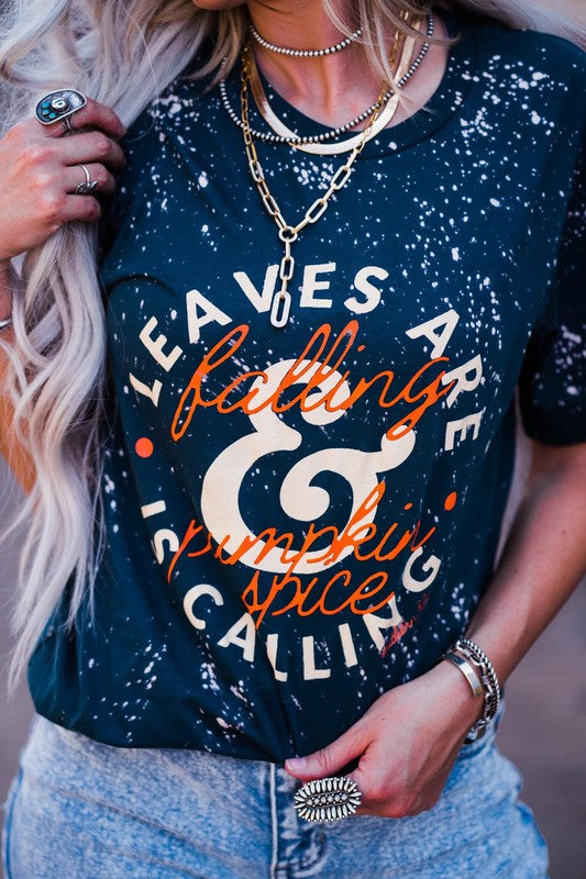 Leaves are Falling Pumpkin Spice is Calling Dark teal bleached tee, so so soft