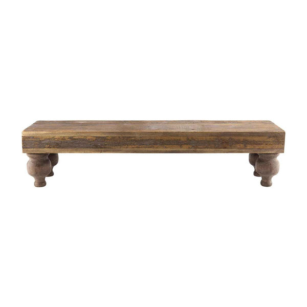 Description: Long wood stand with pedestal feet. Dimension: 7 1/2" x 32"  Pine Wood