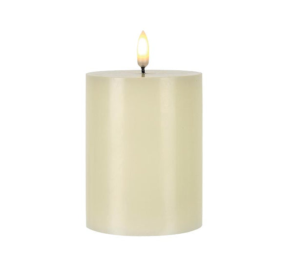Patria™ ivory pillar 3D LED candle. Patented 3D flame creates the flickering glow of a real candle and is dimmable with the Patria™ remote. This can be used manually for...