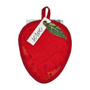 3-piece set. Fruit shaped cotton pot holder comes with two cotton hand towels. Styles sold separate