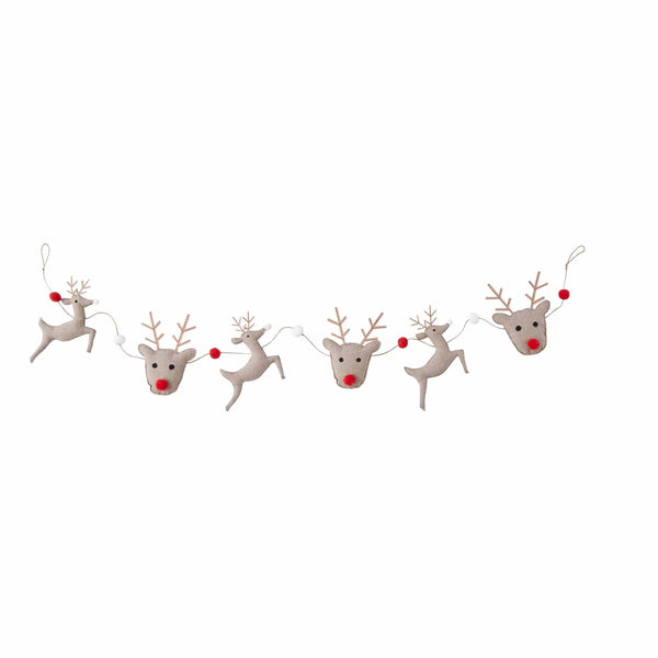 Chambray reindeer garland on jute rope.   Dimensions: 60" Material: COTTON