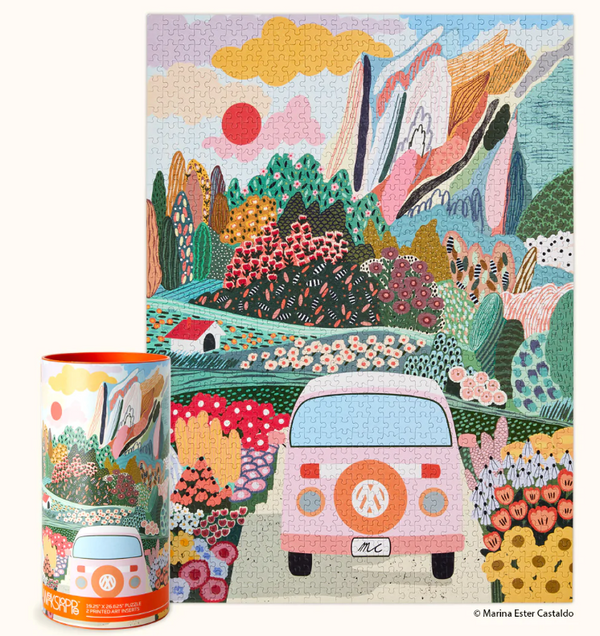 Product Information 1000 piece jigsaw puzzle Assembled puzzle size: 19.25” W x 26.625” H Includes 2 reference art inserts ESKA® 100% recycled board & non-toxic vegetable-based ink Ribbon random-cut pieces Package size: 5.25” Dia x 10” H Recommended...