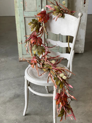 A sensational mix of textures that includes grasses, thistle like blooms, tiny bubble berries and even some fall leaves tucked in for extra charm. materials: eva, plastic, bubble berries, polyester,...