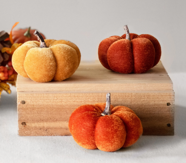 SET /3 WARM COLORED MINI VELVET PUMPKINS