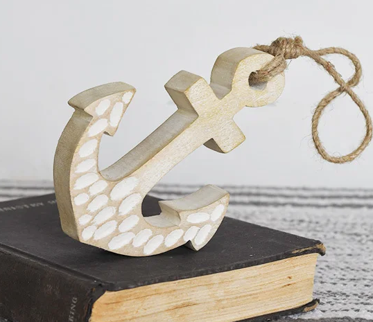 SM. HANGING CARVED WOOD ANCHOR