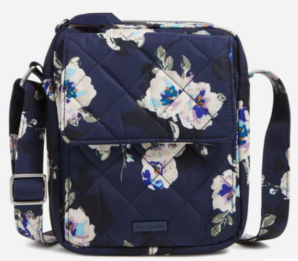 Small Crossbody Bag in Performance Twill-Blooms and Branches Navy
