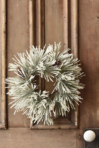 A wonderfully wintery collection of pine that has a thick icy finish with glitter coating its long needles.  Features natural pine cones for an extra pop of texture.  materials: pvc...