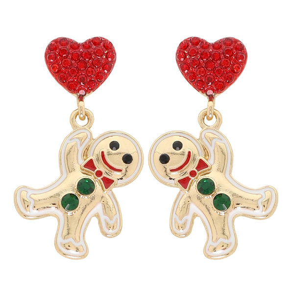 Sophia Collection - 2-Tier Heart Post Gingerbread Man Earrings