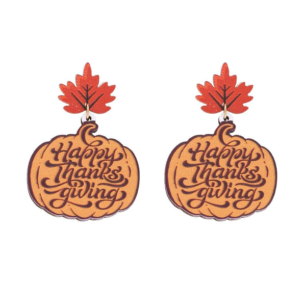 These Autumn Leaf Thanksgiving Wooded Earrings are the perfect thanksgiving accessory. PUMPKIN (E12956BRN) HEIGHT: 1.75" WIDTH: 1.25" TURKEY (E12957BRN) HEIGHT: 2.15" WIDTH: 1.25" AUTUMN RED LEAF PUMPKIN TEXT LETTERING CURSIVE...